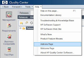 Você pode acessar página de Add-ins do Quality Center ou na página inicial do Quality Center, antes da autenticação, ou caso já esteja dentro da aplicação, através do menu Help > Add-ins Page.